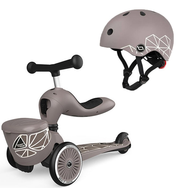 Scoot and Ride Highwaykick 1 Lifestyle - 2w1 Jeździk i Hulajnoga 1-5 Lat zestaw z kaskiem XXS | Brown Lines