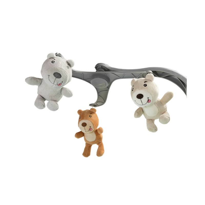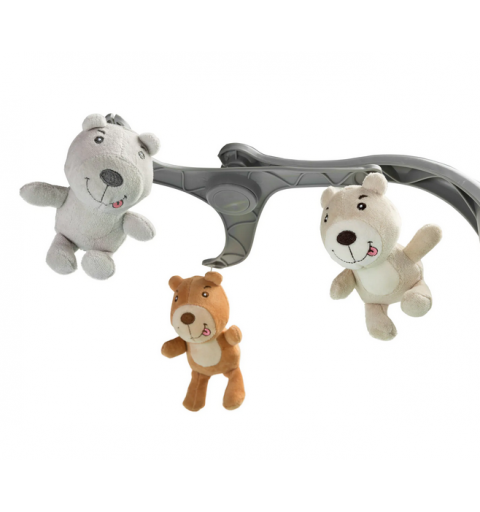 - + absorbująca uwagę karuzelka z trzema uroczymi pluszowymi misiami, pomagająca rozwijać sprawność manualną