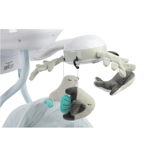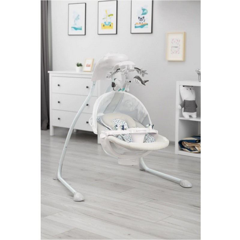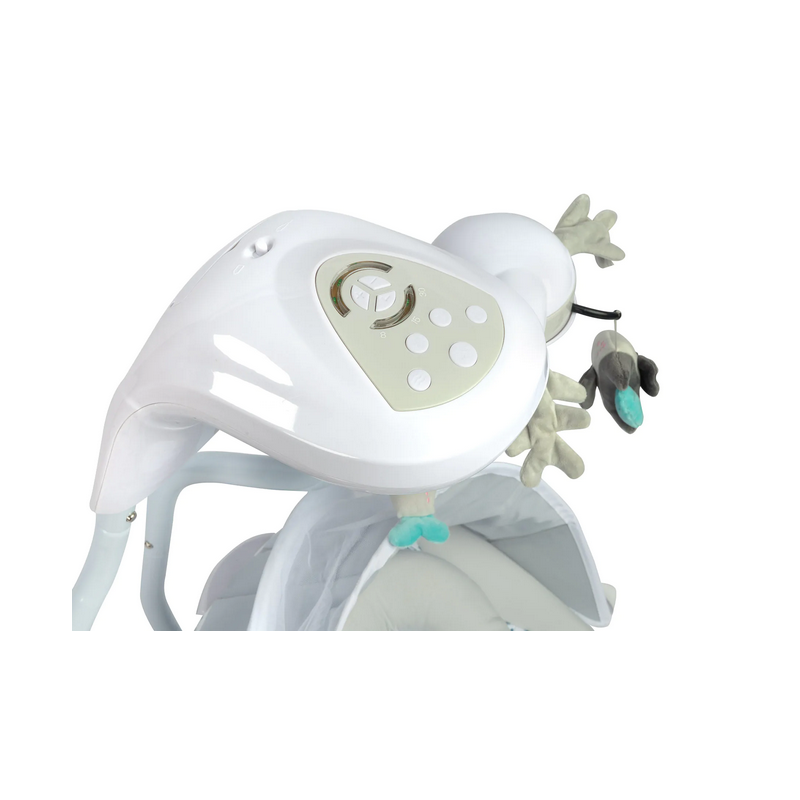 + 5 prędkości huśtania i czasomierz pozwalający na automatyczne wyłączenie bujania po 8, 15 lub 30 minutach