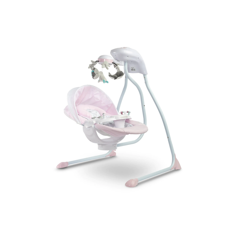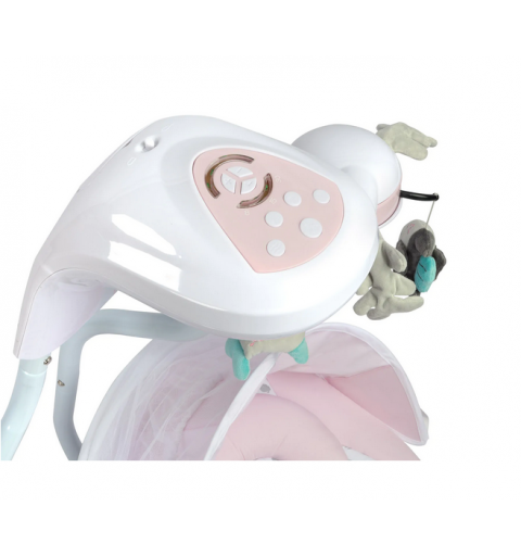 + 5 prędkości huśtania i czasomierz pozwalający na automatyczne wyłączenie bujania po 8, 15 lub 30 minutach