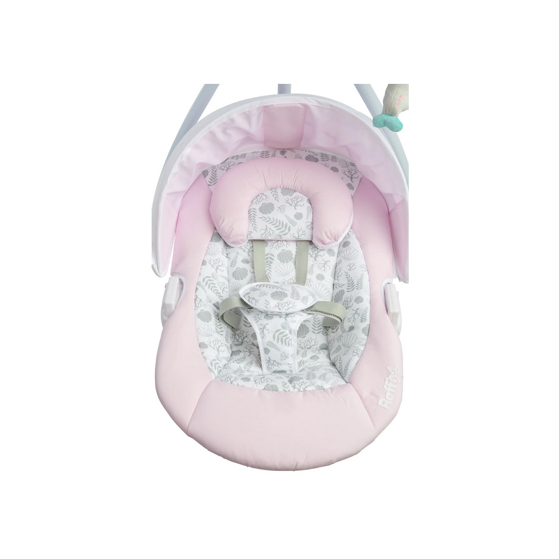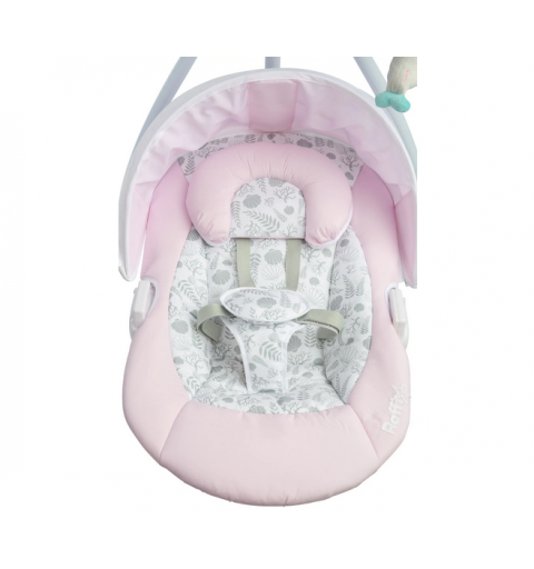 Raffi to wysokiej klasy huśtawka elektryczna przeznaczona dla niemowląt. Wygodne siedzisko z poduszką umożliwia korzystanie z niej od pierwszych dni życia niemowlęcia. Dwustopniowa regulacja oparcia pozwala na ułożenie dziecka w pozycji leżącej lub półleżącej. Obracając siedzisko o 90 stopni (w lewo lub w prawo) można zmieniać sposób bujania (prawo-lewo na przód-tył). Huśtawka posiada elektryczną karuzelkę ze światełkami oraz zdejmowaną tackę ułatwiającą opiekę nad dzieckiem. Raffi jest wyposażony również w odpinaną moskitierę z daszkiem i może być zasilany bateriami, co ułatwia korzystanie z niego na zewnątrz.