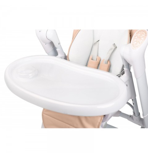 + obszerne oparcie rozkłada się do pozycji leżącej (niezależnie od siedziska – 4 stopnie regulacji) – dziecko ma zapewnioną wygodę podczas posiłku i relaksu