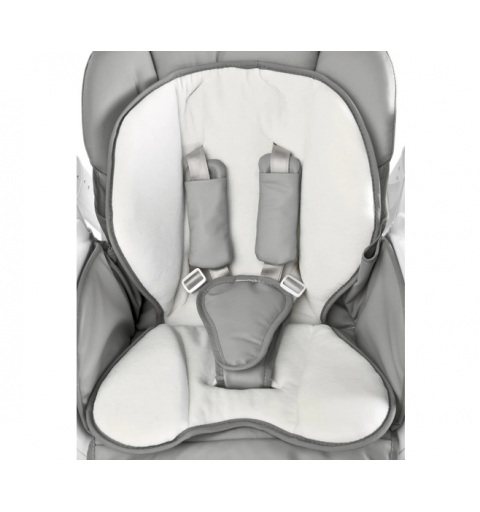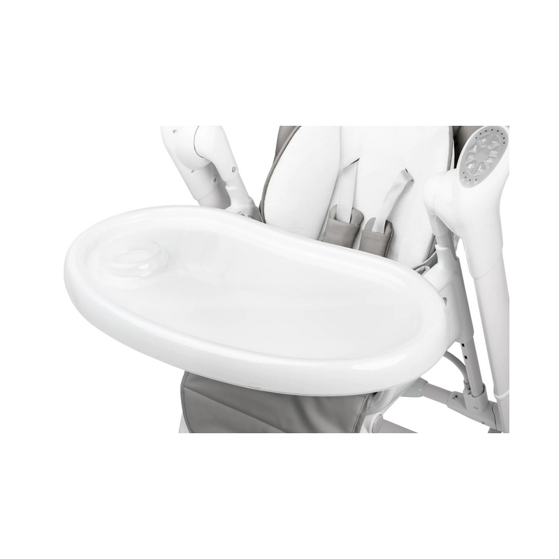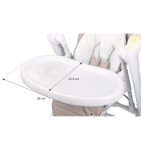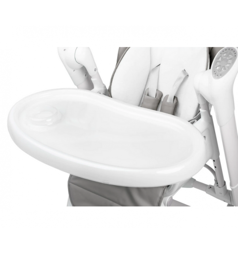 + obszerne oparcie rozkłada się do pozycji leżącej (niezależnie od siedziska – 4 stopnie regulacji) – dziecko ma zapewnioną wygodę podczas posiłku i relaksu