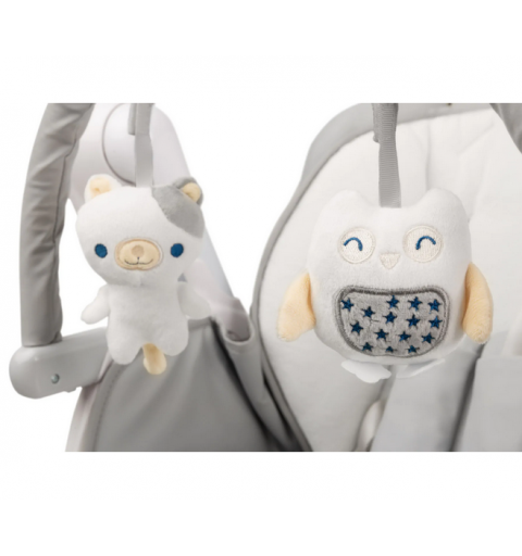 + regulowana prędkość huśtania i czasomierz pozwalający na automatyczne wyłączenie bujania po 8, 15 lub 30 minutach
