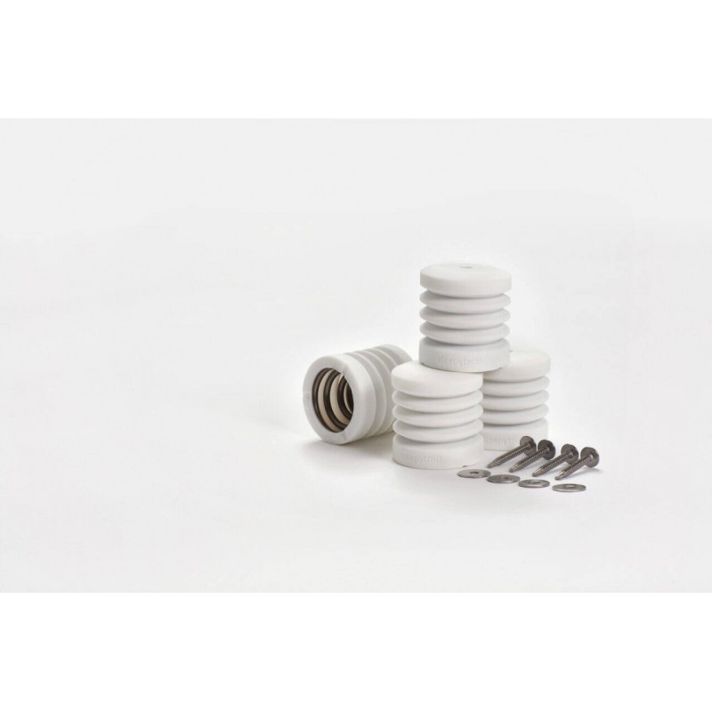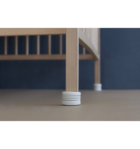 Stopki do łóżeczka Sleepytroll dostarczane są z 4 śrubami (wymagane wstępne nawiercenie) i można je nakładać wyłącznie na drewniane nogi łóżeczka.