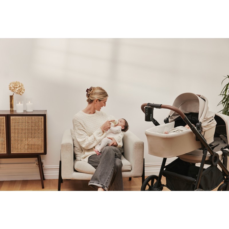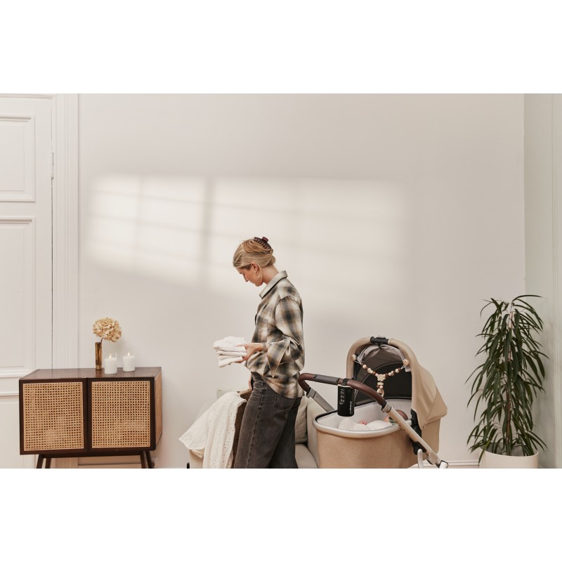 Mocny silnik bezszczotkowy: regulowana intensywność. Kołysze nawet wózki bliźniacze.