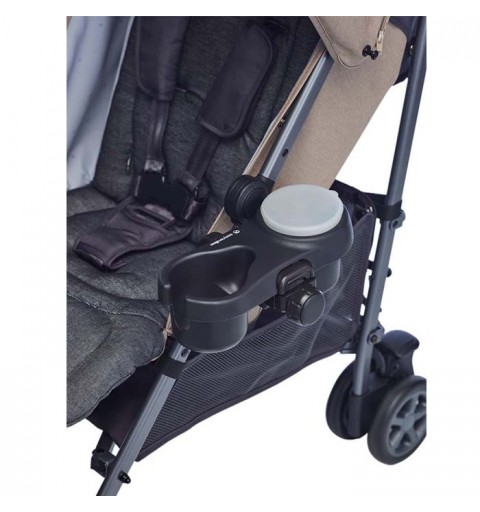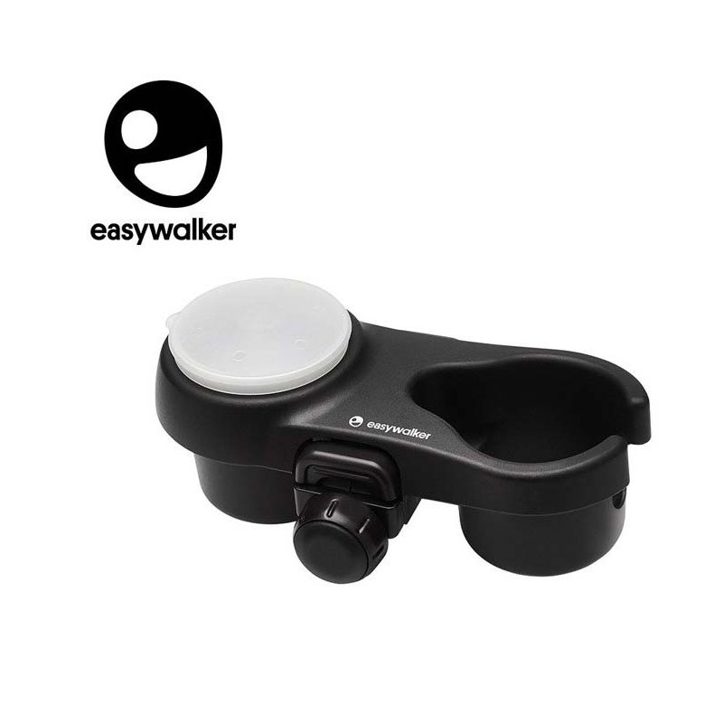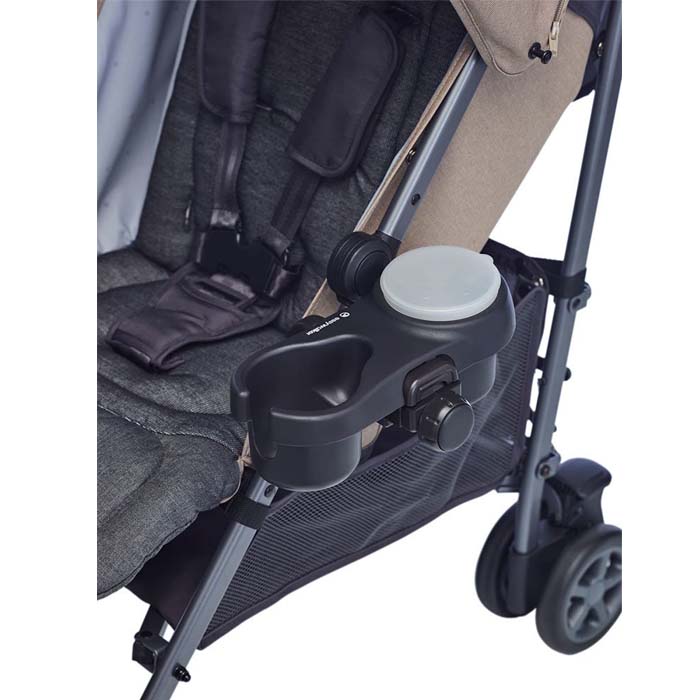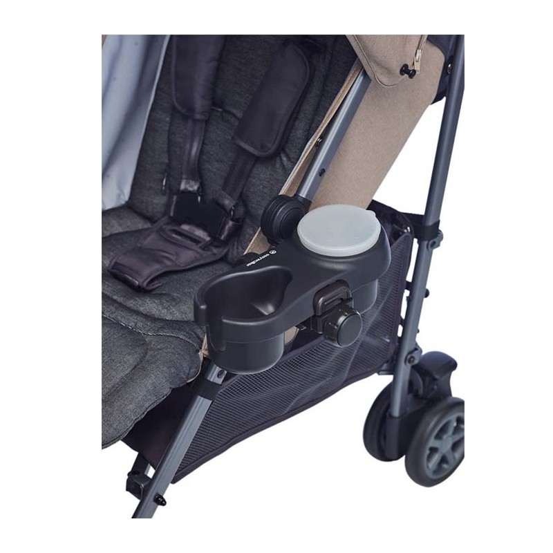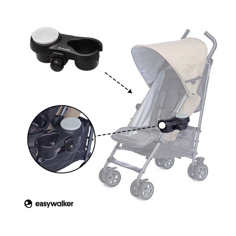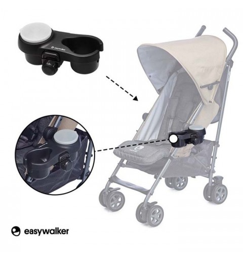 Tacka na przekąski holenderskiej marki Easywalker. Solidnie mocowana na wkręt do ramy wózka. Ma dwie komory – zamykany wieczkiem pojemnik na przekąski i otwartą wnękę na kubek lub butelkę. To bardzo praktyczne i wygodne rozwiązanie, dzięki któremu i ulubione smakołyki, i napój dla dziecka są zawsze pod ręką, nie rozsypują się, nie gniotą i nie rozlewają. Tacka jest czarna i ma ergonomiczny kształt. Kompatybilna ze wszystkimi wózkami i spacerówkami marki, a także innymi wózkami, wózkami sklepowymi czy wysokimi krzesełkami. Można ją myć w zmywarce.