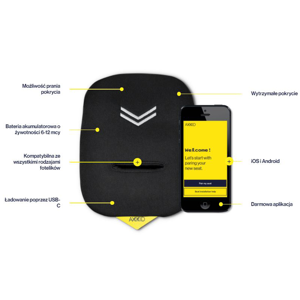 Wkładka Axkid Connect ma za zadanie powiadamianie rodzica, kiedy temperatura w foteliku jest zbyt wysoka lub zbyt niska, oraz kiedy dziecko zbyt długo przebywa w foteliku i należałaby mu się drobna przerwa. Ważną sprawą jest takie powiadomienie nawet w sytuacji, gdy zupełnie przypadkiem pozostawimy dziecko samo w samochodzie. Wkładka pasuje do wszystkich fotelików dostępnych na rynku. Jest kompatybilna z systemem IOS (iPhone) oraz Android, a łączy się z telefonem za pomocą Bluetooth. Wkładka zintegrowana jest z darmową aplikacją Axkid Connect, która umożliwia łatwy dostęp do instrukcji obsługi, filmów instruktażowych oraz opisów produktów tej marki.