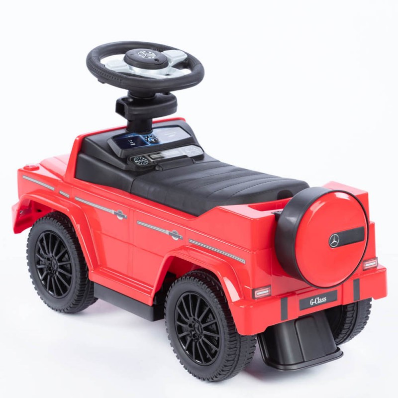 Jeździk z prowadnikiem MERCEDES-BENZ G350 CZERWONYM posiada oficjalną licencję Mercedesa.
