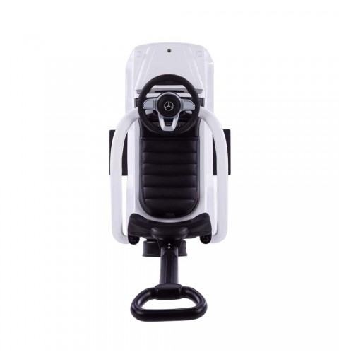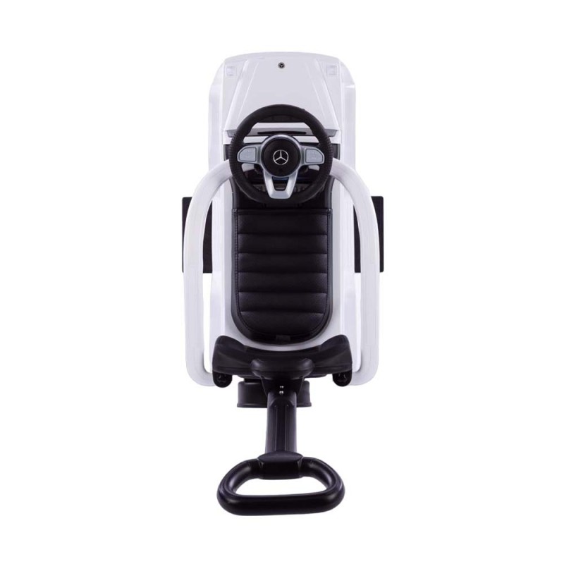 Jeździk z prowadnikiem MERCEDES-BENZ G350 CZARNY na gumowych kołach i z eko-skórzanym siedziskiem posiada oficjalną licencję Mercedesa.