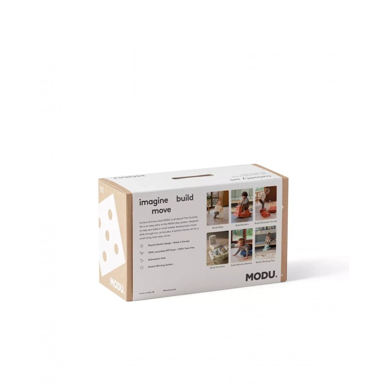 Jesteście ciekawi o co chodzi z MODU? Curiosity set to prosty wstęp do systemu MODU i świetny wybór na start dla malucha. Prosty zestaw startowy, który pozwoli Twojemu dziecku rozwinąć podstawowe zdolności motoryczne. Zbuduj deskorolkę do uatrakcyjnienia czasu na brzuszku, bujak do ćwiczenia balansu albo zabierz malucha na przejażdżkę pojazdem. To wielofunkcyjna zabawka, która nie zajmuje dużo przestrzeni - idealna do małego kącika zabaw w salonie. Możesz rozbudowywać zestaw o kolejne elementy, kiedy Twoje dziecko będzie rosło i uczyło się nowych umiejętności - to część zabawy!