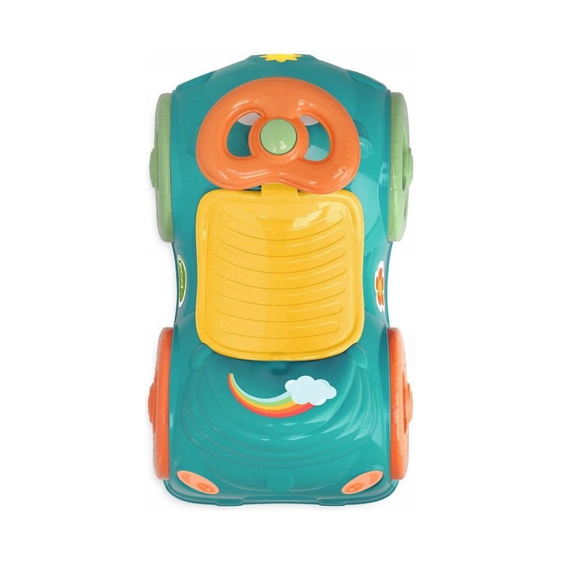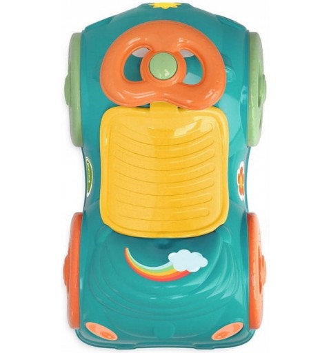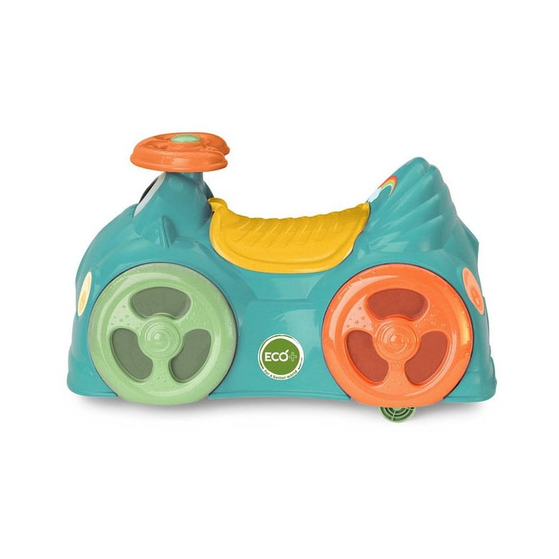 Jeździk ma obrotowe koła, dzięki którym dziecko może się swobodnie poruszać. W siedzisku jeździdła ukryty jest schowek, który można wykorzystać do przewożenia ulubionych zabawek i skarbów.