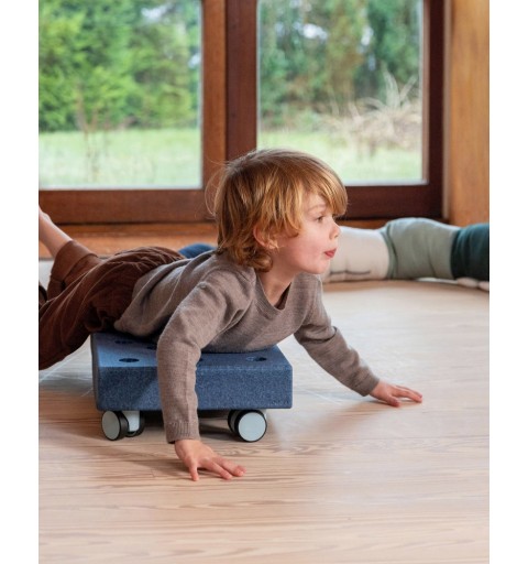 Najnowszy dodatek do zestawów MODU – Scooter Board– nadaje zabawie z MODU nowy wymiar. To prosta, ale wielofunkcyjna zabawka pobudzająca rozwój motoryki i wyobraźni niemowląt i starszych dzieci. Położenie malucha na platformie na kółkach, którą rodzic może poruszać, urozmaici czas spędzony na brzuszku. Po odłączeniu kółek, Scooter Board zamienia się w deskę do bujania. Nawe delikatne ruchy i stymulacja zmysłów wywołują uśmiech na twarzy malucha, a to dopiero początek zabawy! Kiedy dziecko podrośnie, może korzystać ze swobody poruszania się, samodzielnie kręcąc się niej. Po odpięciu kółek, Scooter Board stanie się natomiast deską równoważną, dając mnóstwo frajdy mały surferom. Połączenie jej z innymi elementami klocków MODU, pozwala tworzyć konstrukcje, których nie ogranicza nic, poza fantazją dziecka.