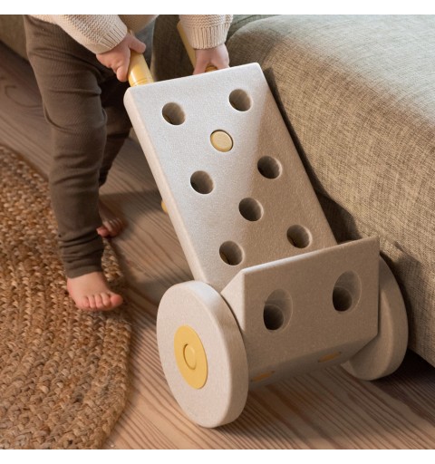 MODU – zestaw 4 piankowych kół to idealne uzupełnienie każdego zestawu MODU. Umożliwiają budowanie mobilnych konstrukcji – jeździków, wózków, taczki czy kreatywnych wynalazków, takich jak kuchenka lub DJ-ski pulpit. Dzięki dwóm sposobom montażu (luźne lub turkoczące) dzieci mogą eksperymentować z dźwiękiem i ruchem, rozwijając zmysły i motorykę w naturalny sposób. To bezpieczne i lekkie koła, które dodają zabawie nowej dynamiki.