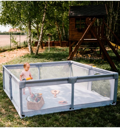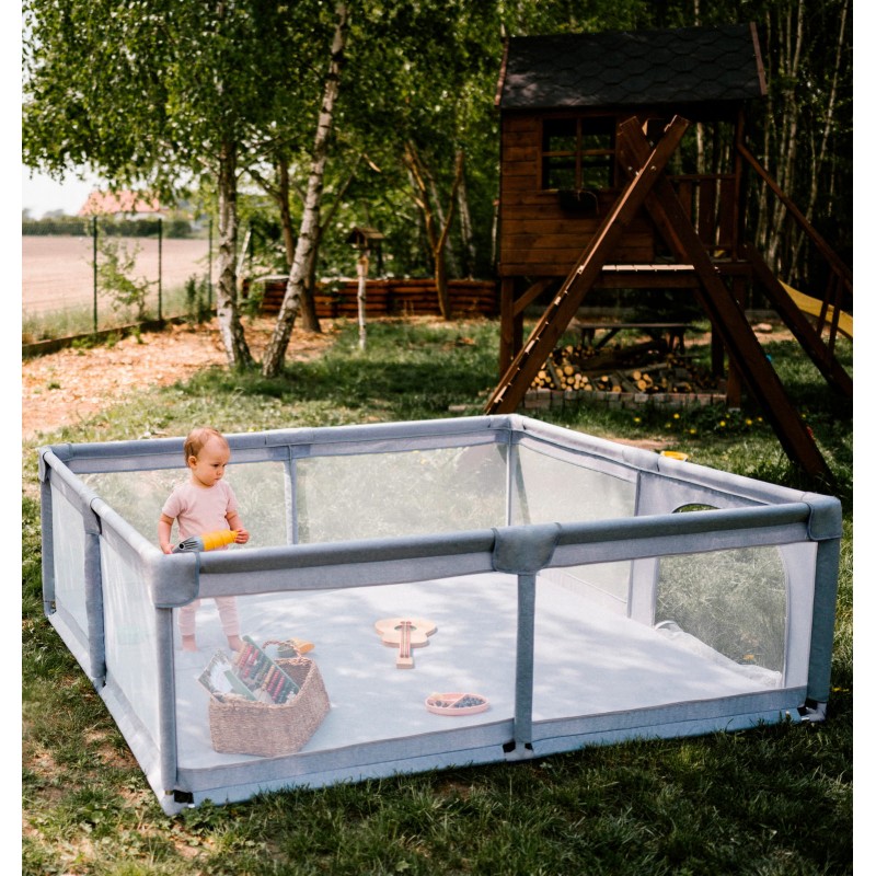 Odporna na rozdarcia i łatwa w czyszczeniu tkanina kojca pozwala na użytkowanie produktu w okresie letnim również na zewnątrz. Wspólnie spędzony czas w ogrodzie z gwarancją bezpiecznej zabawy dla dziecka i odrobiny relaksu dla rodziców będzie prawdziwą przyjemnością.