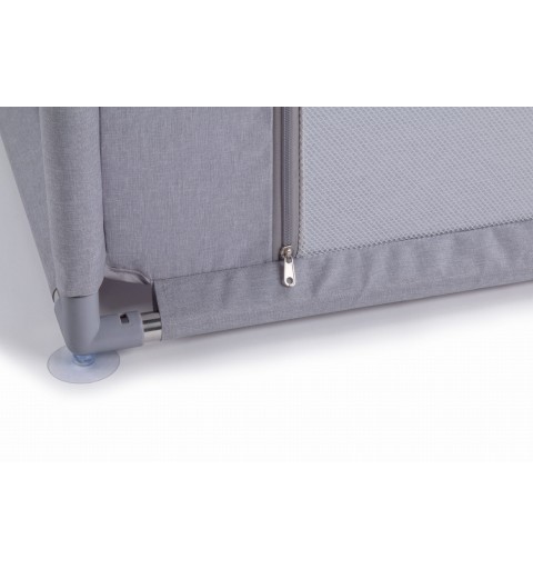 Zastosowana przejrzysta i jednolita siatka umożliwia dziecku obserwowanie otoczenia, zapewnia odpowiednią wentylację oraz gwarantuje, że zabawki umieszczone w kojcu pozostaną wewnątrz.