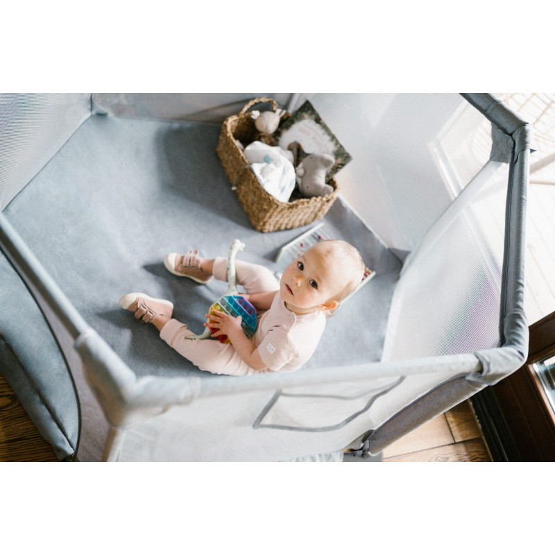 Odporna na rozdarcia i łatwa w czyszczeniu tkanina kojca pozwala na użytkowanie produktu w okresie letnim również na zewnątrz. Wspólnie spędzony czas w ogrodzie z gwarancją bezpiecznej zabawy dla dziecka i odrobiny relaksu dla rodziców będzie prawdziwą przyjemnością.
