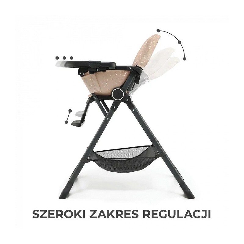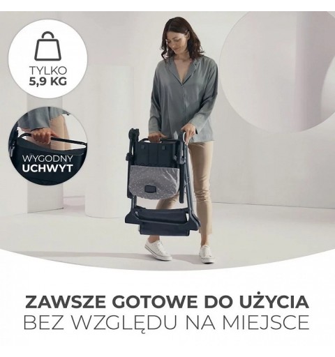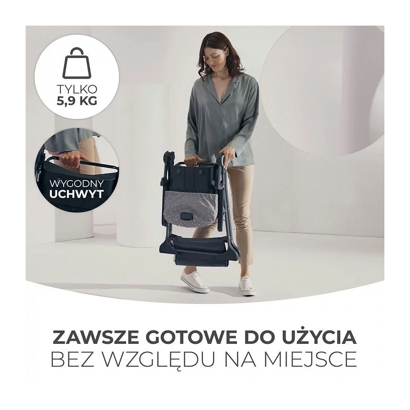 Oto FOLDEE - składane krzesełko do karmienia, idealne dla mobilnych rodziców oraz do małych mieszkań. To stylowe, mobilne i łatwe w czyszczeniu krzesełko możesz złożyć już jednym ruchem. Chcesz wyjechać? A może Twoje dziecko często zmienia zdanie i lubi jeść raz w kuchni, raz w salonie? Z FOLDEE to żaden problem! To krzesełko do karmienia, zaprojektowane do wygodnego spożywania posiłków. Ma 3 pozycje oparcia i 2 pozycje podnóżka, dzięki czemu maluchowi będzie nie tylko wygodnie, ale także pozwoli mu przybrać prawidłową postawę podczas jedzenia. Tackę, którą można regulować w 3 zakresach od siedziska, w razie potrzeby umyjesz pod bieżącą wodą. Krzesełko wyposażono w 5-punktowe pasy, dzięki czemu maluch będzie zawsze bezpieczny.