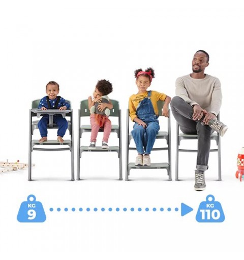 LIVY będzie towarzyszyć dziecku na każdym etapie życia - bez konieczności dokupowania kolejnych elementów. W zestawie znajdują się akcesoria, które umożliwiają stworzenie różnych wariantów krzesełka. Do LIVY dołączono: antypoślizgową podkładkę na tackę, barierkę z pasami oraz miękką poduszkę.
