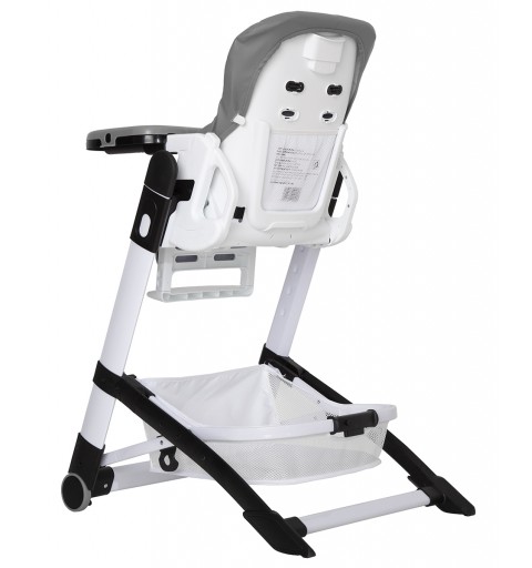 Wysokość pasów bezpieczeństwa jest regulowana. Krzesełko ma duży kosz na zabawki i tylną dodatkową kieszeń.