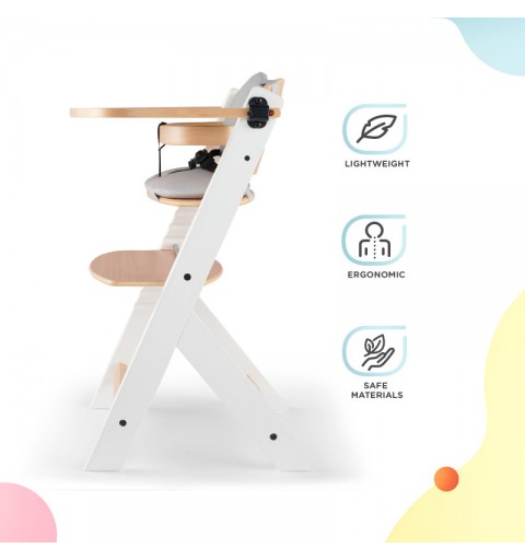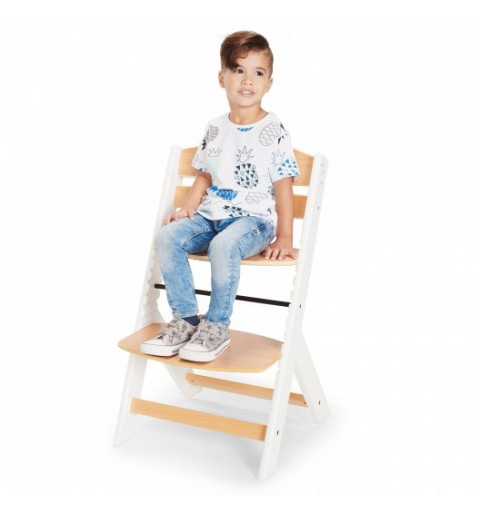ENOCK to wytrzymałe, wielofunkcyjne krzesełko dla dzieci od 6 miesiąca życia do 10 lat. Będzie towarzyszyć twojemu maluchowi od momentu, w którym zacznie siedzieć, aż do czasu odrabiania szkolnych lekcji. Krzesełko do karmienia 2 w 1 ENOCK wyróżnia się ponadczasową stylistyką oraz szerokim zakresem regulacji, dzięki czemu będzie pasować zarówno do stołu w jadalni, jak i dziecięcego biurka. Solidne wykonanie z litego drewna bukowego gwarantuje trwałość na długie lata. Wygodny system regulacji, uwzględniający kilka poziomów siedziska i podnóżka, zapewnia optymalne dopasowanie do dziecka. Oparcie siedziska ma ergonomiczną formę, a samo siedzisko jest szerokie i głębokie. Zapewnia maluchowi wygodę podczas pierwszych prób samodzielnego jedzenia i później, gdy będzie się bawił przy stole. Drewniana konstrukcja krzesełka jest bardzo stabilna, a dodatkowo łatwa w czyszczeniu.