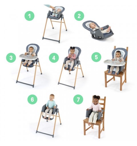 Krzesełko Ingenuity Proper Positioner 7w1 oferuje aż siedem różnych trybów, które dostosowują się do potrzeb dziecka od narodzin aż do 5 roku życia. Jego innowacyjny design wspiera prawidłową postawę i sprzyja lepszemu trawieniu, zarówno u niemowląt, jak i u starszych maluchów.