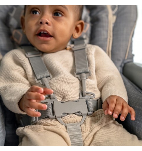Bezpieczeństwo: 5-punktowe pasy bezpieczeństwa dla niemowląt oraz 3-punktowe pasy dla starszych dzieci. Wszystkie elementy zostały przetestowane i zatwierdzone przez niezależne agencje.
