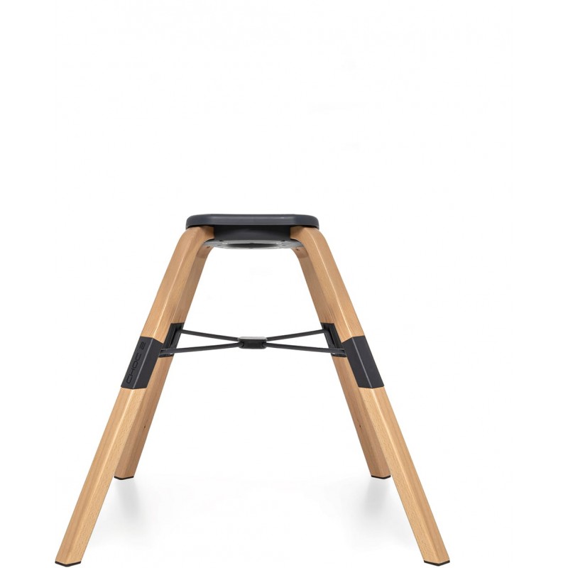Nogi krzesełka zostały wykonane z drewna bukowego. W połączeniu z metalowymi elementami konstrukcyjnymi nadają krzesełku nowoczesny styl.