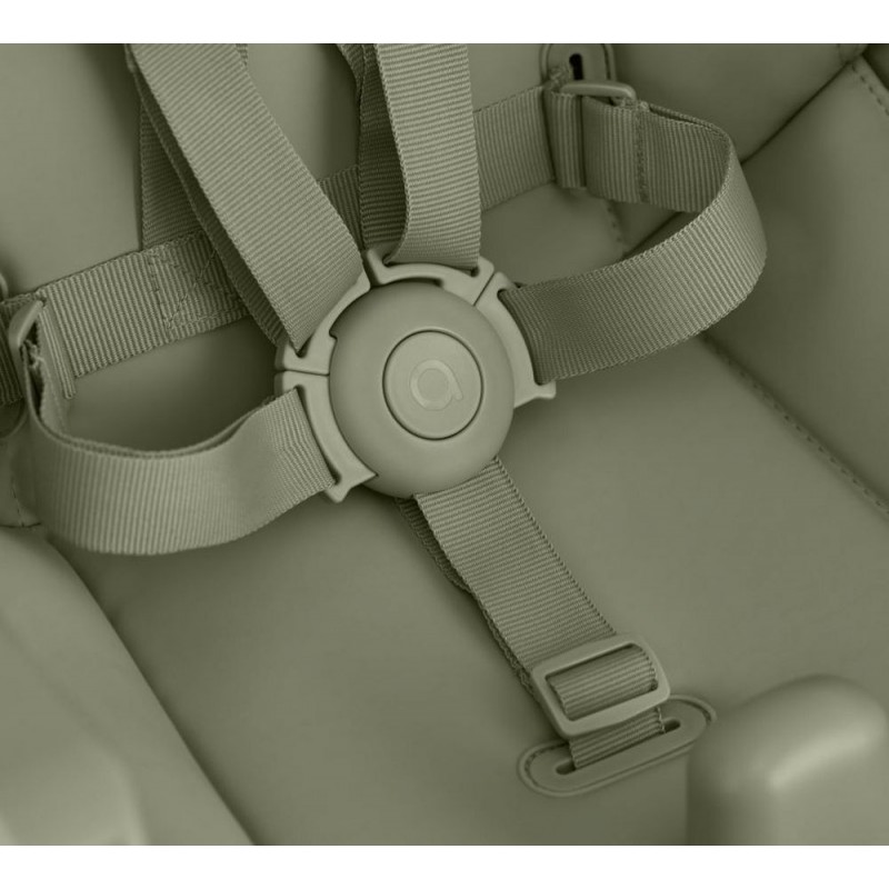 System pięciopunktowych pasów w wysokim krzesełku zapewnia maksymalne bezpieczeństwo podczas posiłków i zabawy.