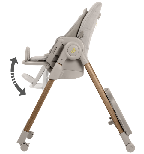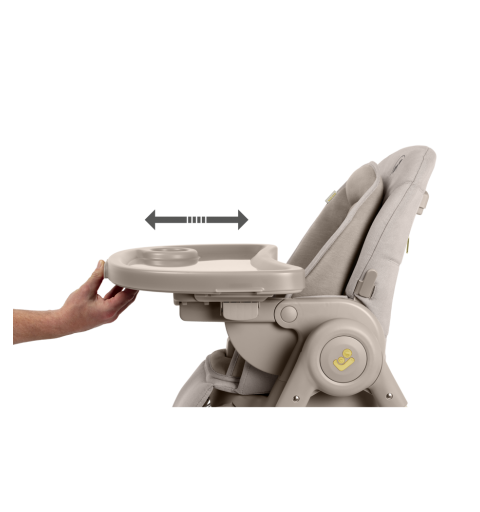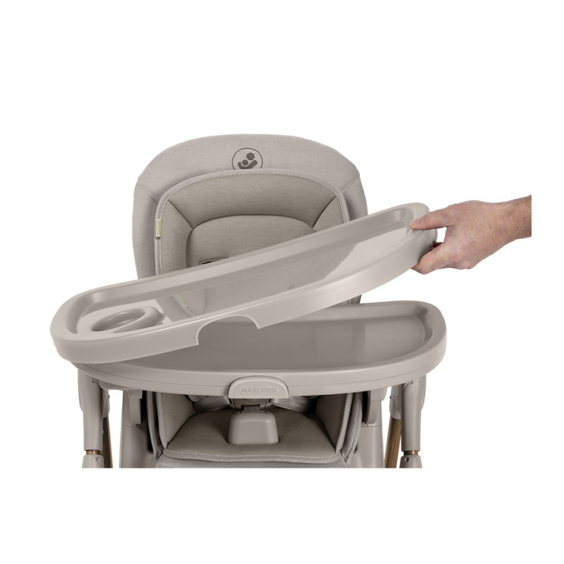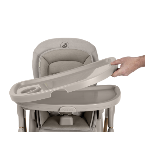 To krzesełko do karmienia ma obrotową tacę odchylaną jedną ręką oraz zaczepy na szelki uprzęży Easy- in, dzięki którym z łatwością umieścisz dziecko w krzesełku i wyjmiesz je po zakończonym posiłku.
