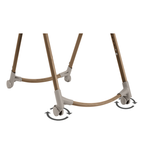 Krzesełko do karmienia Minla Plus uprzyjemni wspólne posiłki całej rodzinie. Obracając tacę jedną ręką, możesz łatwo usadzić dziecko w krzesełku do karmienia, a dodatkową pomocą są haczyki przytrzymujące uprząż w pozycji odchylonej. Przednie kółka obracają się dokoła, co bardzo ułatwia manewrowanie i pozwala idealnie dosunąć wysokie krzesełko Minla Plus do stołu, natomiast hamulce zwiększają jego stabilność i bezpieczeństwo. Po posiłku możesz złożyć krzesełko i odstawić je w miejsce, w którym nie będzie przeszkadzać. Możliwość obracania i zdejmowania tacy oraz jej wodoodporną pokrywę docenisz z pewnością podczas czyszczenia krzesełka.