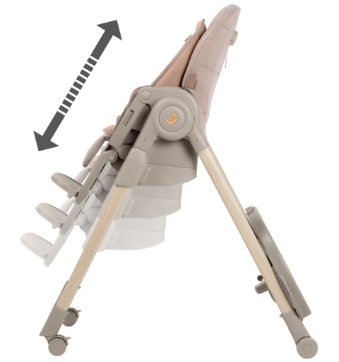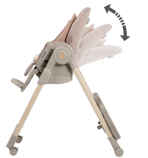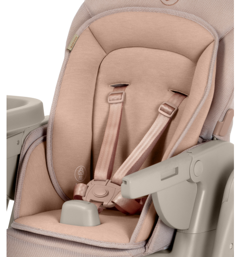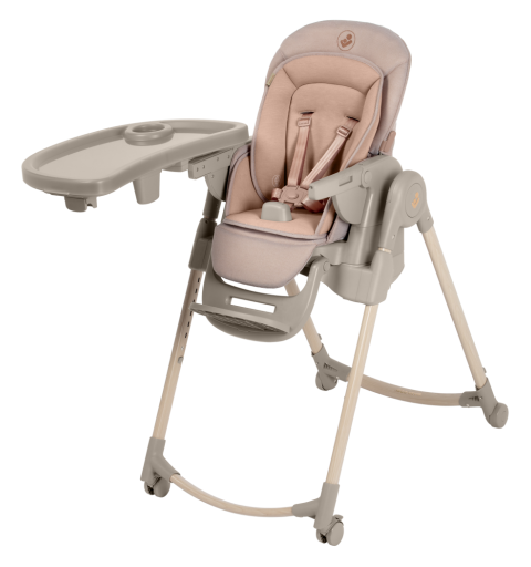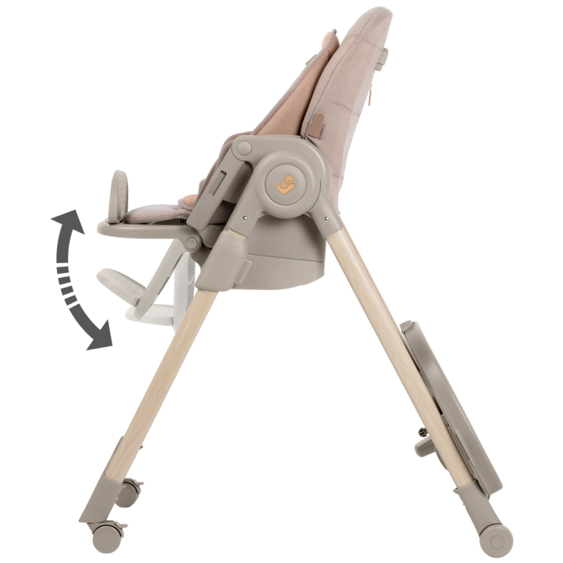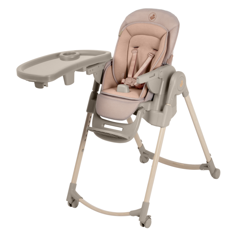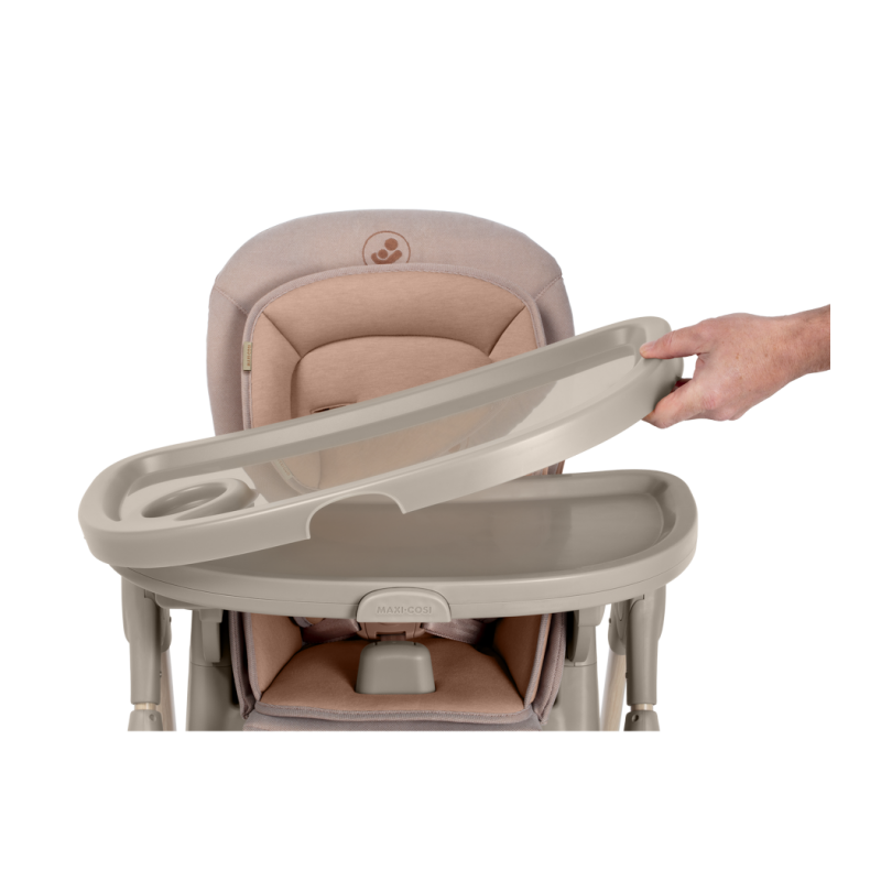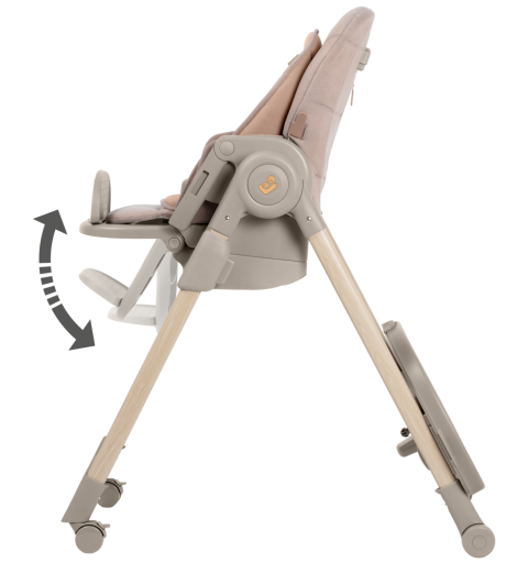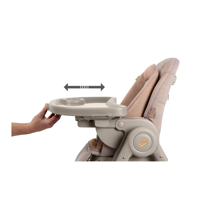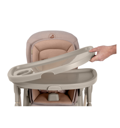 To krzesełko do karmienia ma obrotową tacę odchylaną jedną ręką oraz zaczepy na szelki uprzęży Easy- in, dzięki którym z łatwością umieścisz dziecko w krzesełku i wyjmiesz je po zakończonym posiłku.