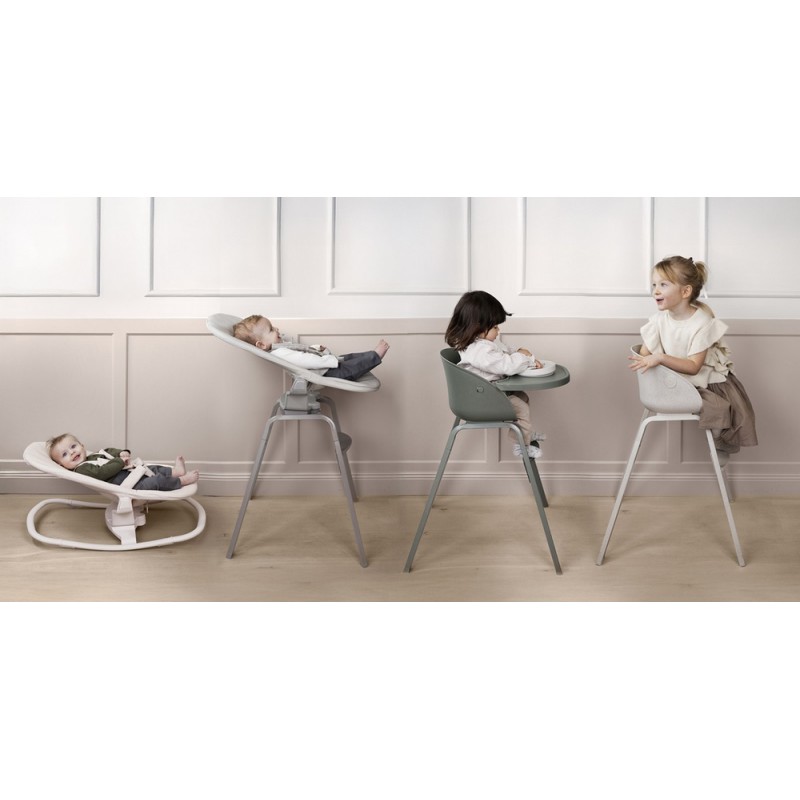 Dzięki możliwości zamontowania leżaczka GRACE, krzesełko może być używane już od pierwszych dni życia. W miarę wzrostu dziecka, zdemontujesz tackę, pasy i barierkę – zamieniając je w samodzielne siedzisko przy stole.