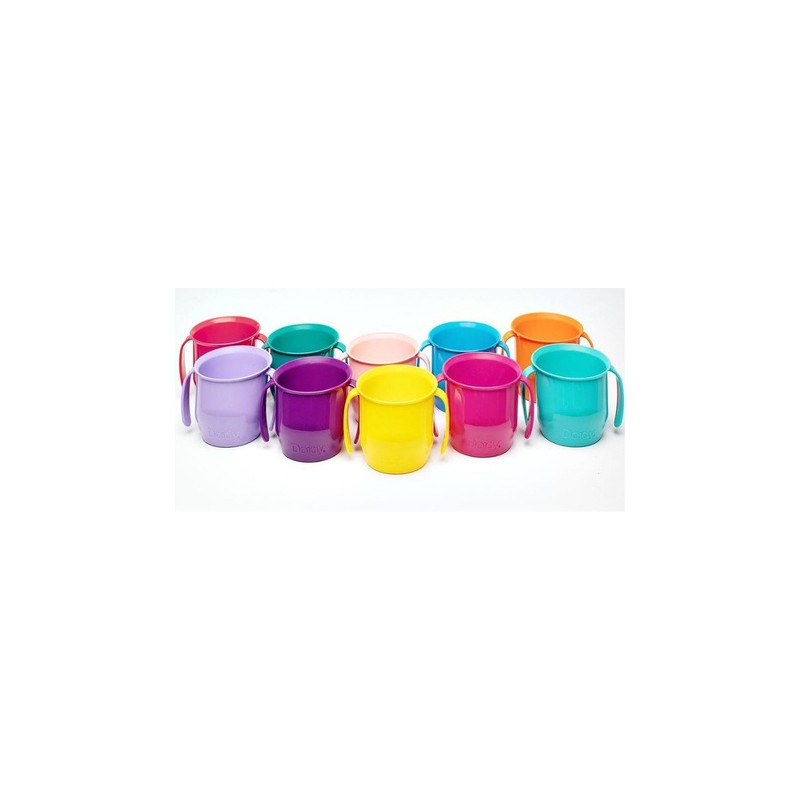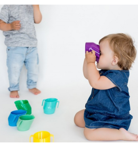 Kultowy przechylony kubeczek do nauki picia dla dzieci w nowej odsłonie. Ten lekki i poręczy kubek, kochany przez dzieci i chętnie kupowany przez rodziców, został uzupełniony o innowacyjne rozwiązania. Zakrzywiona krawędź stanowiąca oparcie dla zębów i szerokie wygodne uchwyty to ukłon w stronę starszych dzieci. Naczynie może służyć zarówno do nauki picia wody, ale również innych płynów, w tym zup kremów.