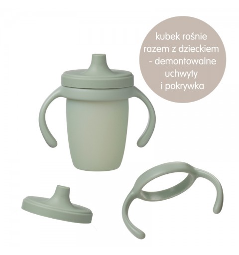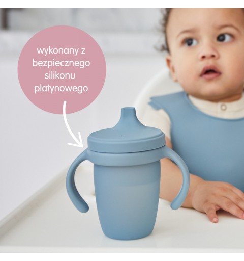 Zapewnij swojemu dziecku wsparcie w rozwoju, wprowadzając kubek zaprojektowany z myślą o jego pierwszych krokach w samodzielnym piciu. Wykonany z najwyższej jakości, bezpiecznego, platynowego silikonu, jest trwały i miły w dotyku. Zdejmowane uchwyty, idealne dla małych rączek, ułatwiają dziecku pewne trzymanie kubka.