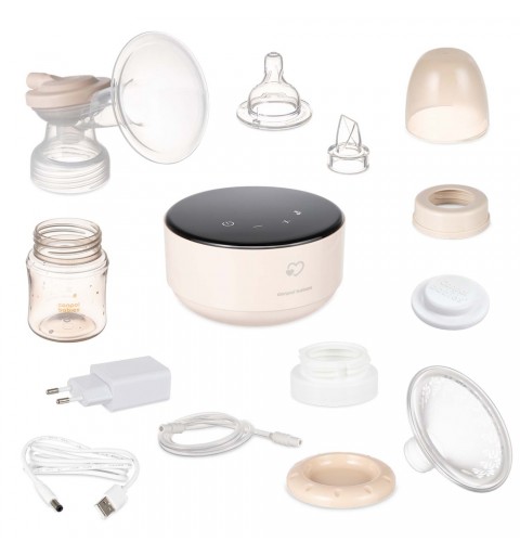 Ergonomiczny kształt lejka dopasowuje się do różnych kształtów piersi, tak aby proces odciągania mleka przypominał ten naturalny. Lejek z miękką, wyprofilowaną nakładką masującą wykonaną z delikatnego silikonu nie podrażnia wrażliwych brodawek i zwiększa komfort podczas odciągania pokarmu. Laktator wyposażony jest w czytelny wyświetlacz, który informuje o włączonym trybie, stopniu mocy oraz poziomie naładowania baterii. Dotykowy panel sterowania jest łatwy w obsłudze i zapamiętuje ostatnio używane ustawienia.