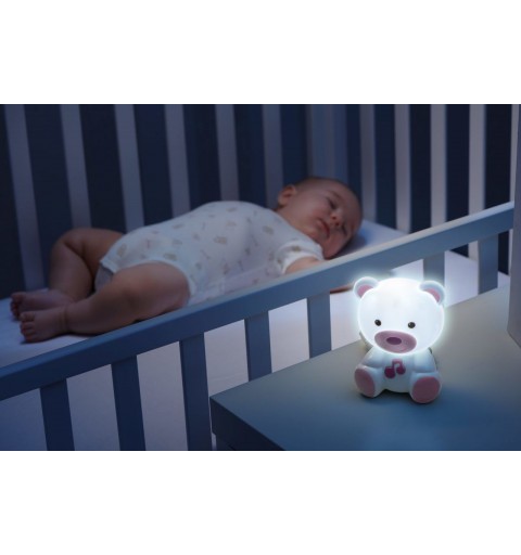Nocna lampka Miś z serii First Dreams to świecący przyjaciel dziecka, który delikatnie rozświetla pokój, tworząc w nim relaksującą atmosferę wspomagająca zasypianie. Zabawka oferuje 10 minut melodii – muzyka klasyczna (Grieg i Offenbach) i New Age. 3 sposoby użycia: nocne światełko, melodie, nocne światełko z melodiami. Aby włączyć światło wystarczy przechylić Misia. Światełko i melodie włączają się na 10 minut, a następnie zabawka przechodzi w tryb czuwania. Aby ponownie aktywować funkcje elektroniczne, obrócić zabawkę lub nacisnąć przycisk nutki.