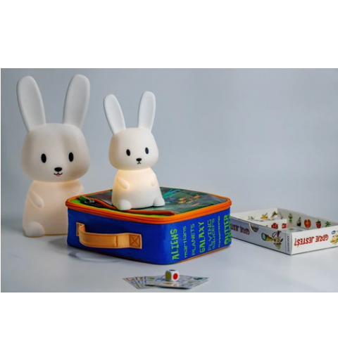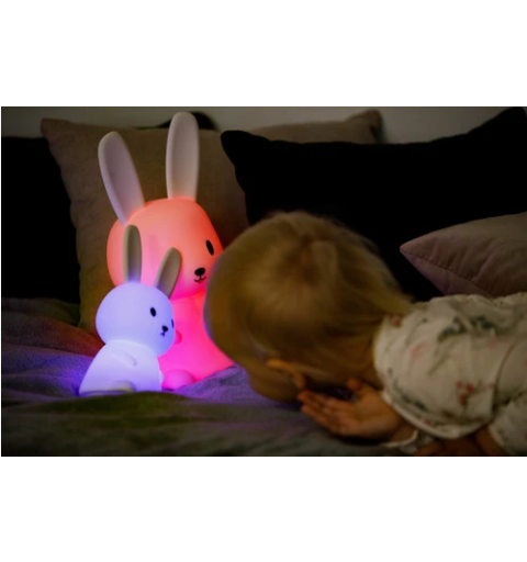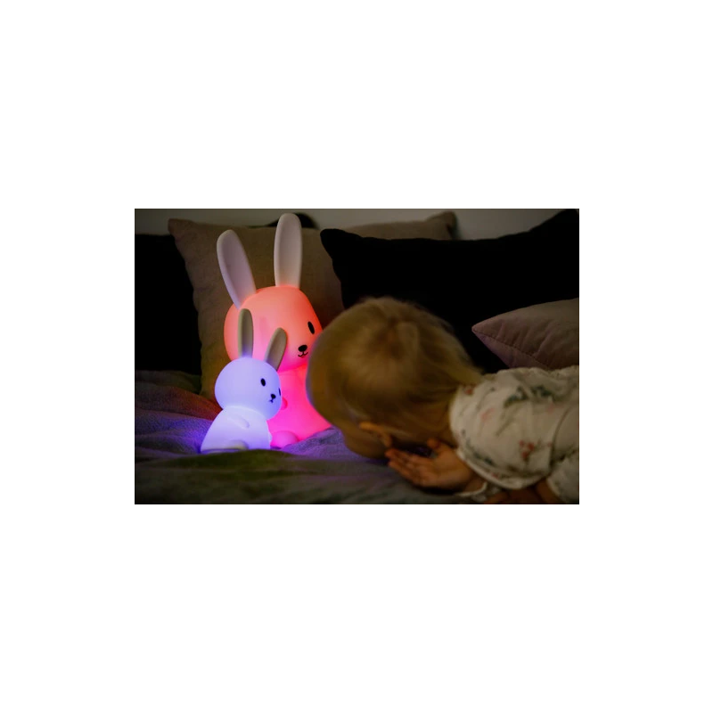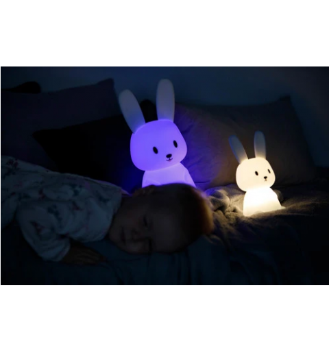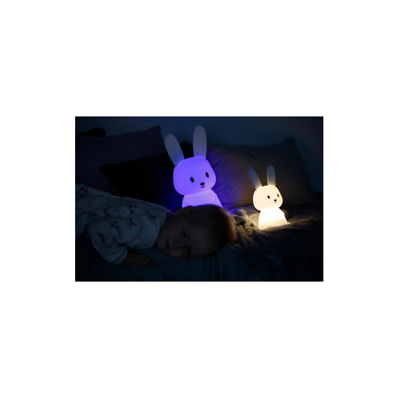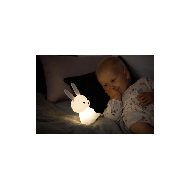 Miękki, elastyczny silikon niezawierający BPA, z jakiego wykonana została lampeczka zapewnia bezpieczeństwo użytkowania nawet najmniejszych dzieci. Długie uszy świetnie sprawdzą się do trzymania lampki przez małe dzieci. Natomiast zmiana kolorów za pomocą dotknięcia lampki ręką to świetna zabawa, nie tylko podczas wieczornego rytuału zasypiania. Dziecko może dowoli zgniatać lampkę, a ona po chwili powróci do swojego kształtu.