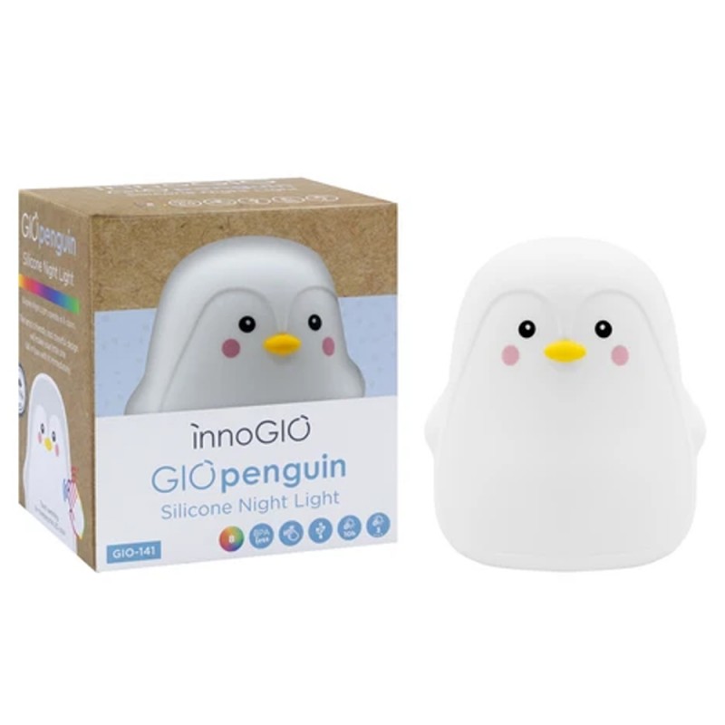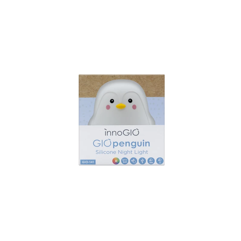 Słodki i piękny kształt GIOpenguin sprawia, że szybko stanie się on przyjacielem każdego dziecka. Włączona lampeczka emituje delikatne i subtelne światło, które tworzy spokojną i miłą atmosferę w dziecięcym pokoju.