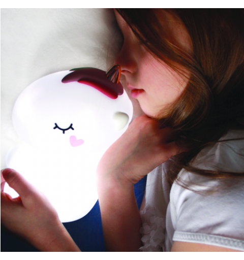 Piękny, delikatny i subtelny wizerunek Unicorna sprawi, że lampeczka stanie się przyjacielem dziecka. Nie nagrzewa się, jest mięciutka i bardzo przyjemna w dotyku. Dziecko może ją ściskać, a ona po chwili wróci do swojego kształtu. Wykonana jest z bezpiecznego silikonu, wolnego od BPA.