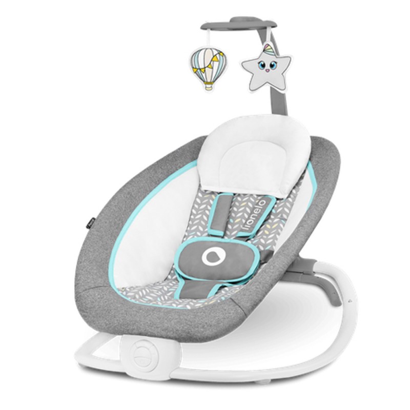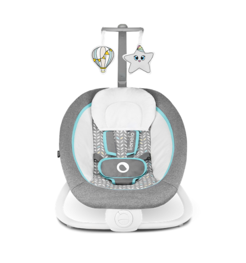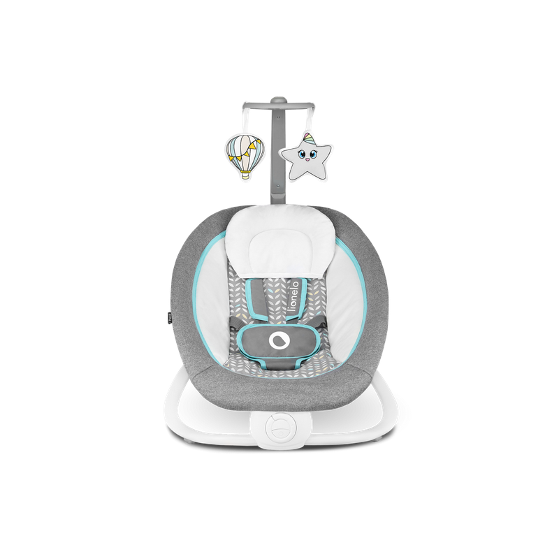 Komfortowy leżaczek dla malucha Lionelo Pascal Grey Dove z wibracjami i zabawkami
