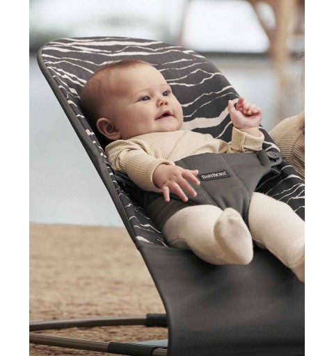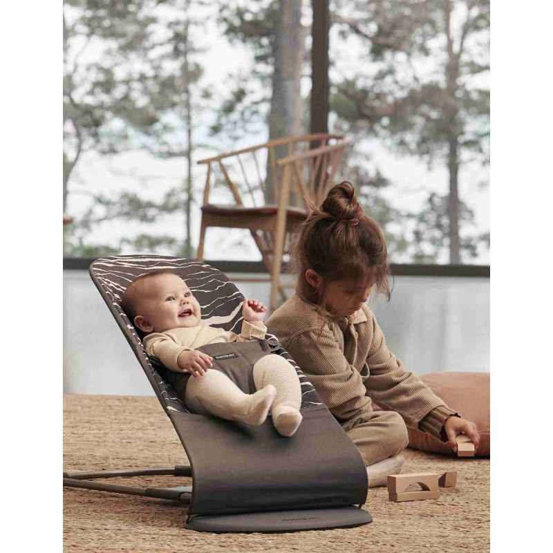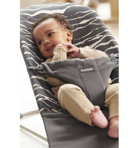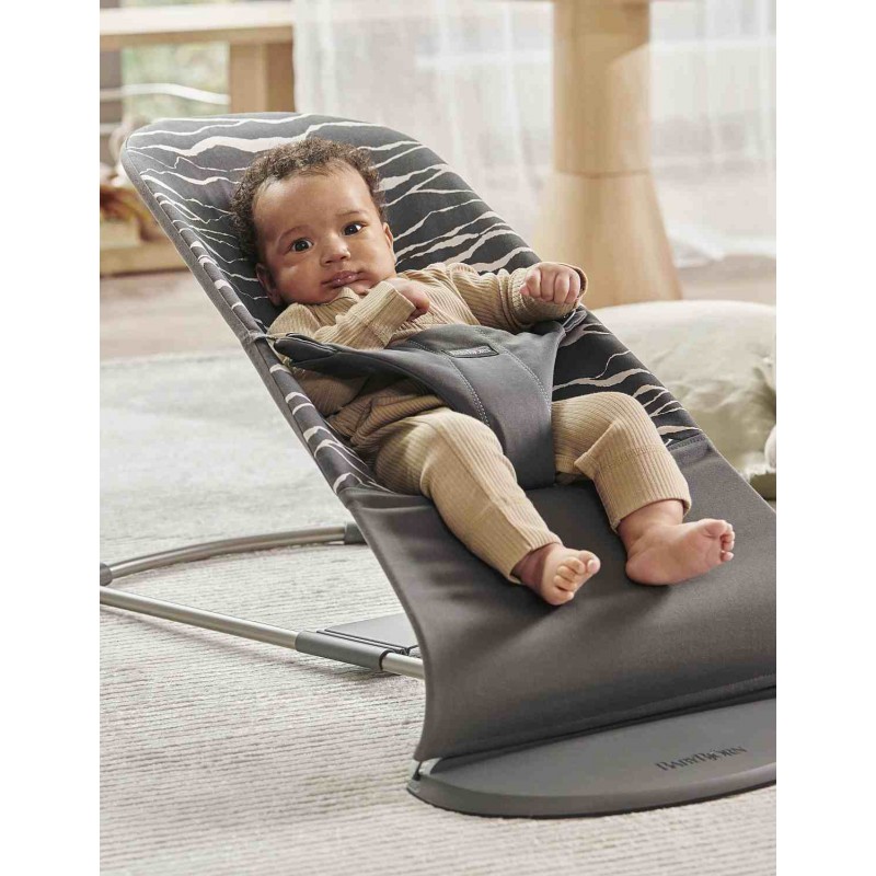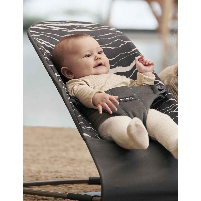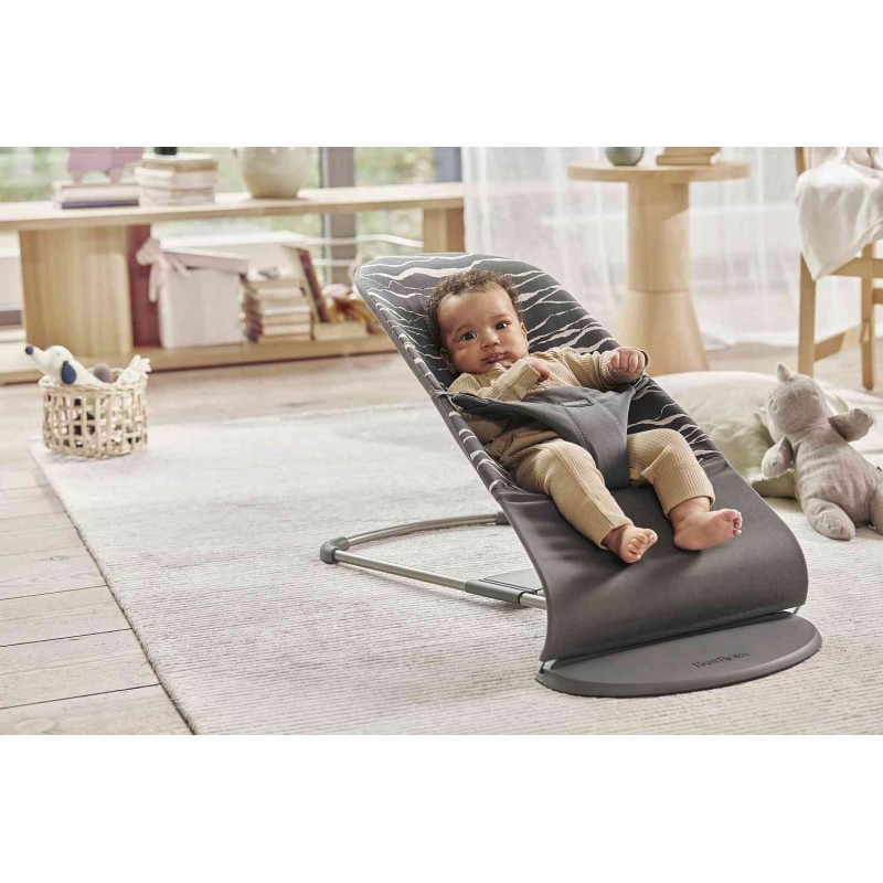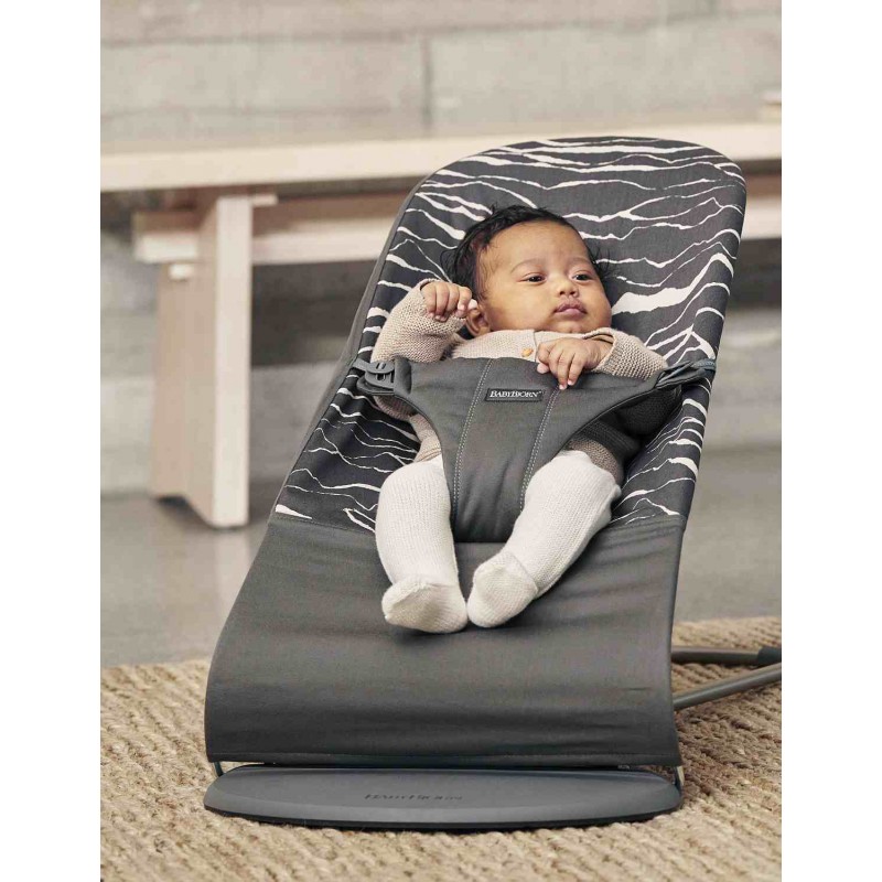 Dzięki dwustronnemu poszyciu leżaczek BABYBJÖRN Bliss może być użytkowany zarówno jako leżaczek jak i fotelik. Leżaczek jest idealnym rozwiązaniem od okresu niemowlęcego do momentu, w którym dziecko nauczy się stabilnie siedzieć. Dla starszych, już chodzących dzieci leżaczek można łatwo przekształcić w wygodny fotelik - wystarczy zdjąć i odwrócić materiał z oparcia oraz zmienić jego stopień nachylenia.