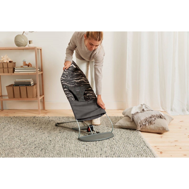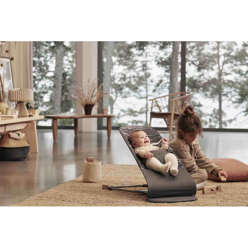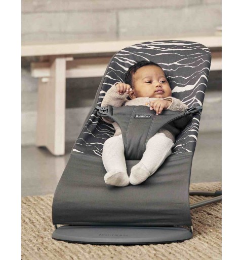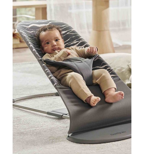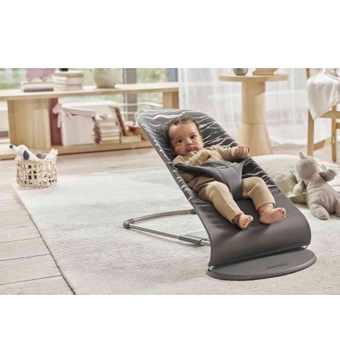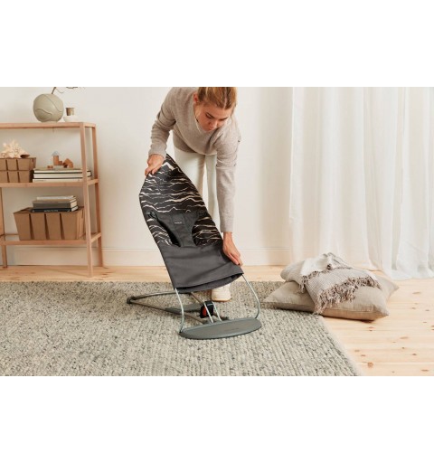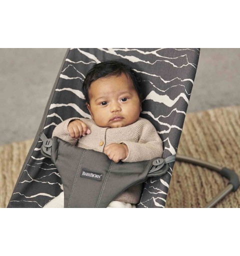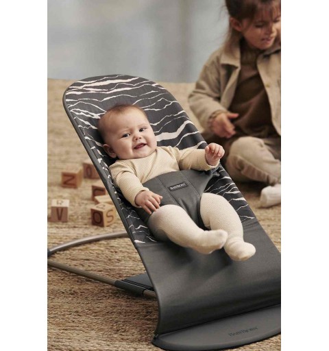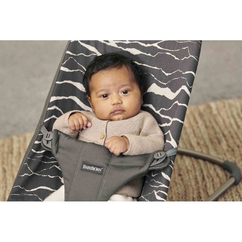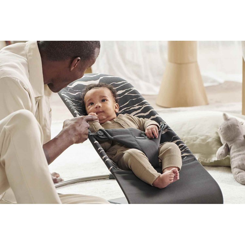 Dzięki dwustronnemu poszyciu leżaczek BABYBJÖRN Bliss może być użytkowany zarówno jako leżaczek jak i fotelik. Leżaczek jest idealnym rozwiązaniem od okresu niemowlęcego do momentu, w którym dziecko nauczy się stabilnie siedzieć. Dla starszych, już chodzących dzieci leżaczek można łatwo przekształcić w wygodny fotelik - wystarczy zdjąć i odwrócić materiał z oparcia oraz zmienić jego stopień nachylenia.