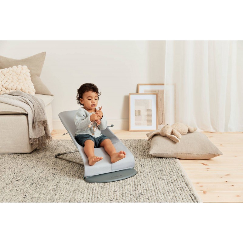 Dzięki dwustronnemu poszyciu leżaczek BABYBJÖRN Bliss może być użytkowany zarówno jako leżaczek jak i fotelik. Leżaczek jest idealnym rozwiązaniem od okresu niemowlęcego do momentu, w którym dziecko nauczy się stabilnie siedzieć. Dla starszych, już chodzących dzieci leżaczek można łatwo przekształcić w wygodny fotelik - wystarczy zdjąć i odwrócić materiał z oparcia oraz zmienić jego stopień nachylenia.