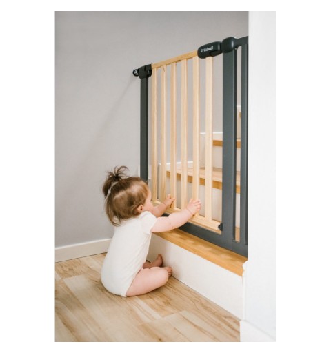 Pomagamy dbać o estetykę. Bramkę Trasti cechuje nowoczesny i elegancki design, Połączenie naturalnego drewna sosnowego z malowaną proszkowo stalą który doskonale wpasuje się w każde wnętrze. Nie musisz więc rezygnować z elegancji dla bezpieczeństwa.