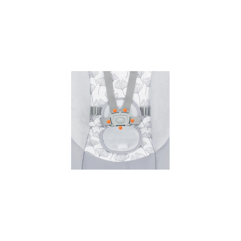 Bujaczek ma regulowane, 5-punktowe pasy bezpieczeństwa z możliwością przepięcia na 2 wysokościach.