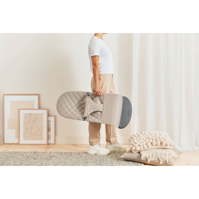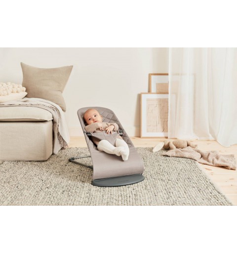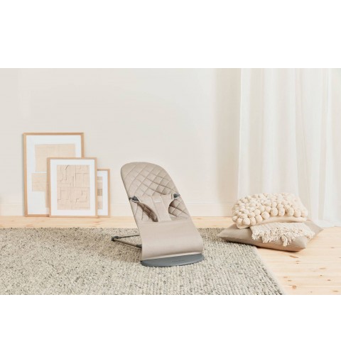 Dzięki dwustronnemu poszyciu leżaczek BABYBJÖRN Bliss może być użytkowany zarówno jako leżaczek jak i fotelik. Leżaczek jest idealnym rozwiązaniem od okresu niemowlęcego do momentu, w którym dziecko nauczy się stabilnie siedzieć. Dla starszych, już chodzących dzieci leżaczek można łatwo przekształcić w wygodny fotelik - wystarczy zdjąć i odwrócić materiał z oparcia oraz zmienić jego stopień nachylenia.