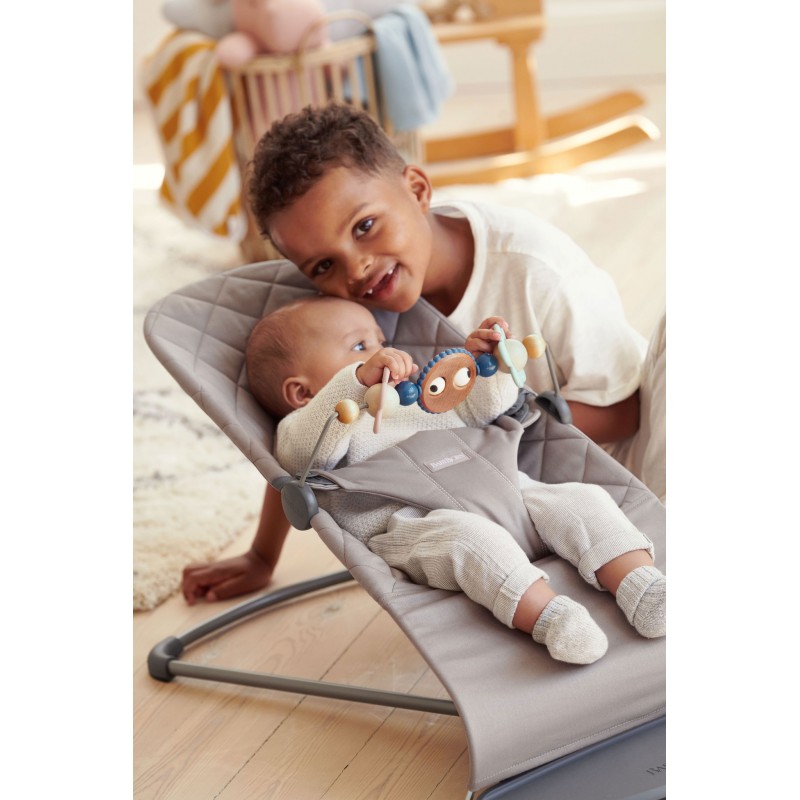 BabyBjorn Bliss - leżaczek, bujaczek, krzesełko | Piaskowy Szary Woven + Zabawka Googly Eyes Pastels