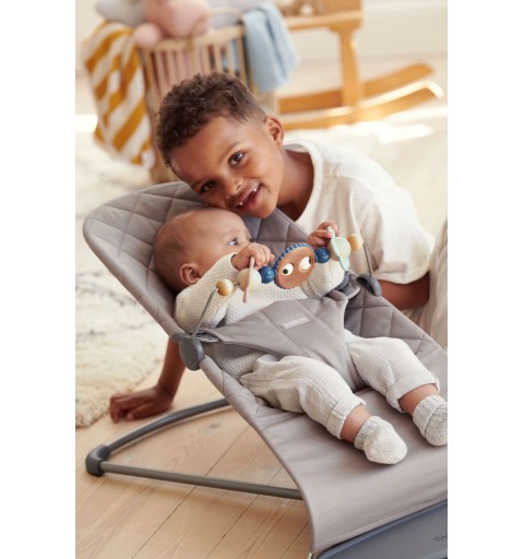 Leżaczek BabyBjorn zapewnia Twojemu dziecku przytulne miejsce do zabawy i odpoczynku. Porusza się dzięki naturalnym i spontanicznym ruchom dziecka. Dziecko bujając się rozwija zdolności motoryczne oraz równowagę w całkowicie naturalny dla siebie sposób. Młodsze dziecko można delikatnie i cicho kołysać ręką lub stopą.