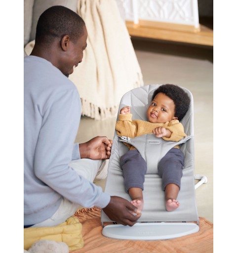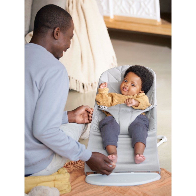 Dzięki dwustronnemu poszyciu leżaczek BABYBJÖRN Bliss może być użytkowany zarówno jako leżaczek jak i fotelik. Leżaczek jest idealnym rozwiązaniem od okresu niemowlęcego do momentu, w którym dziecko nauczy się stabilnie siedzieć. Dla starszych, już chodzących dzieci leżaczek można łatwo przekształcić w wygodny fotelik - wystarczy zdjąć i odwrócić materiał z oparcia oraz zmienić jego stopień nachylenia.